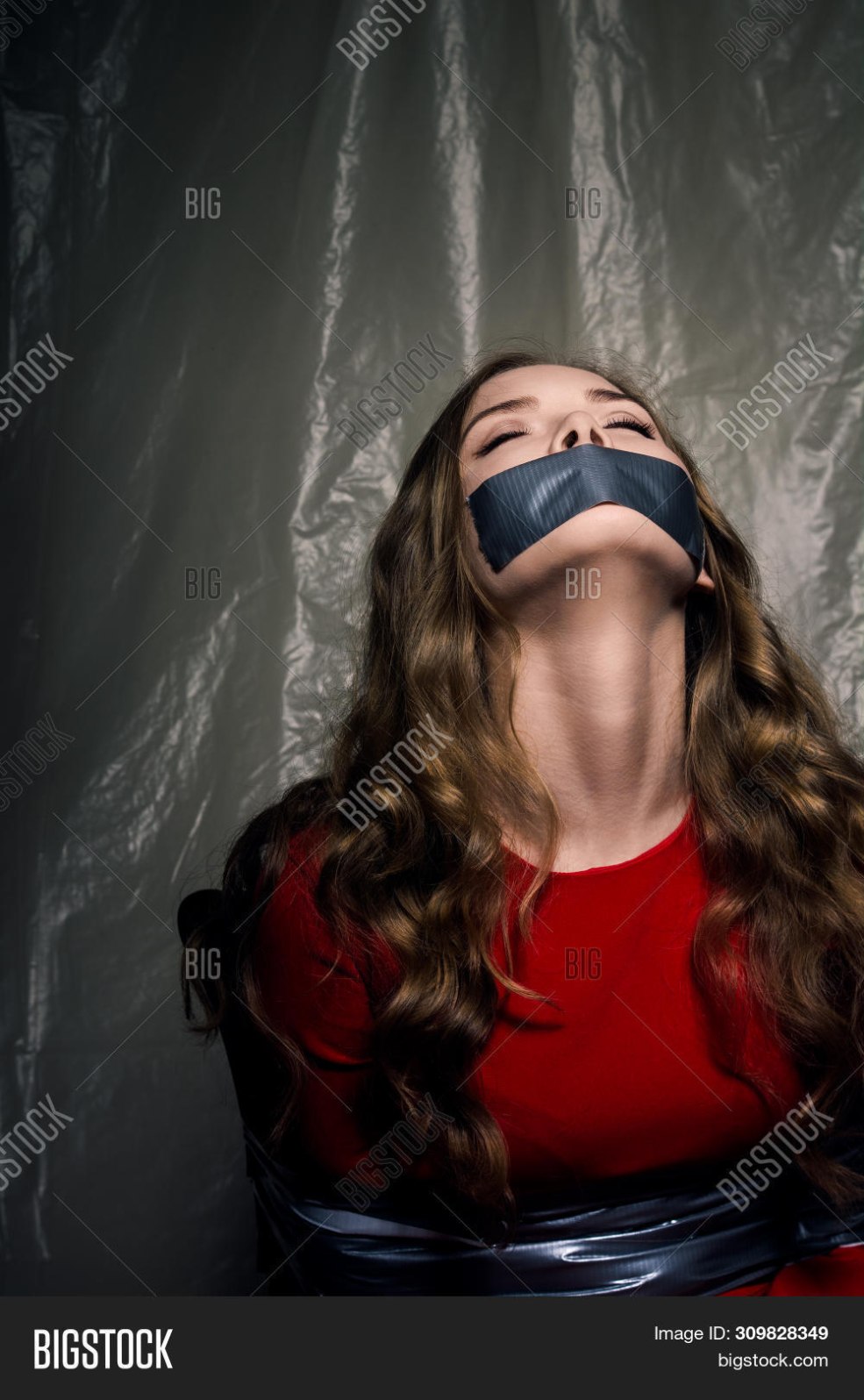 Fille attachée avec du ruban adhésif