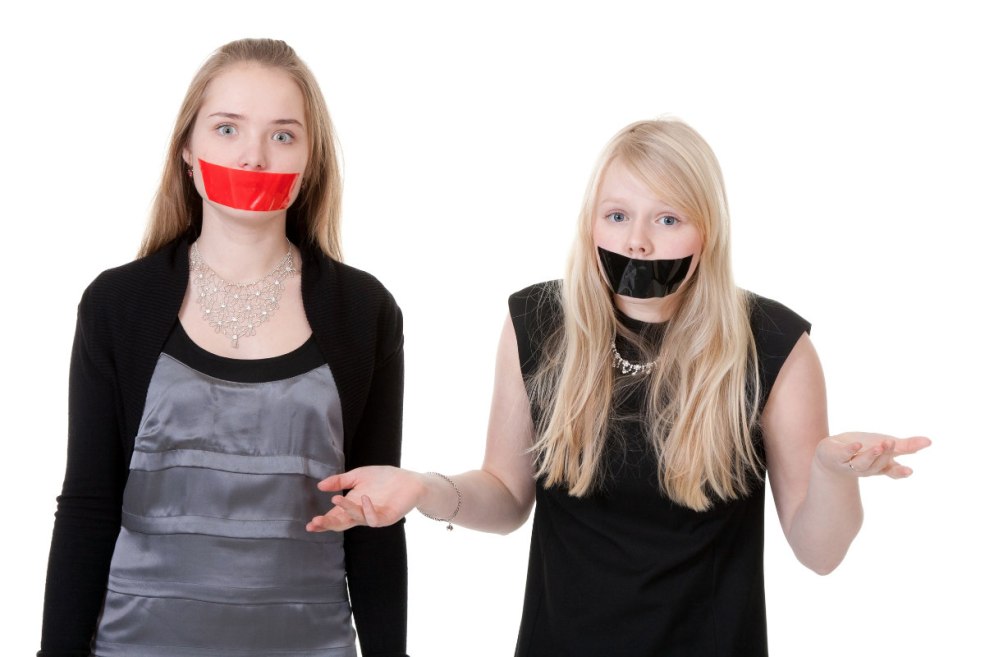 Fille avec sa bouche scellée