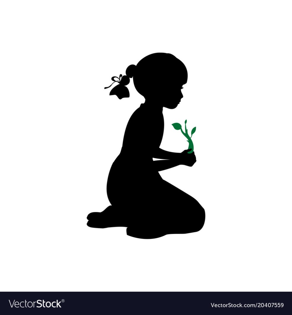 La silhouette de la fille est à genoux