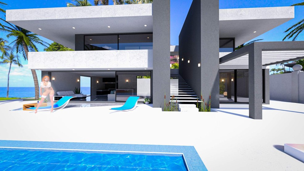 Liz cambré dans un maillot de bain