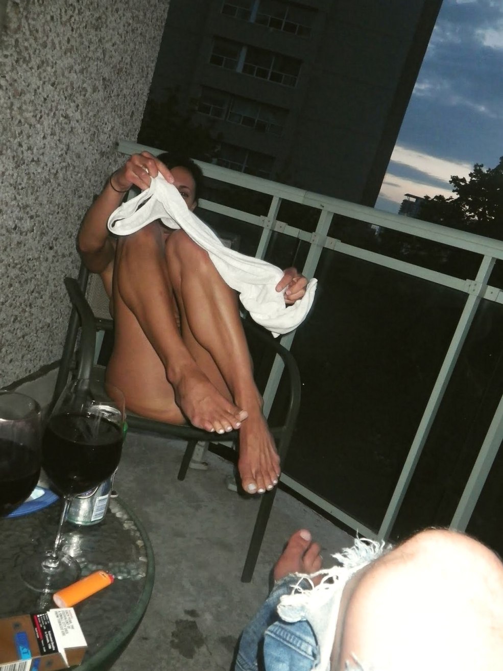 Mature s'est montrée nue du balcon