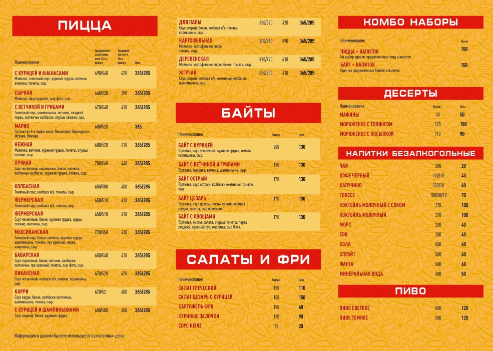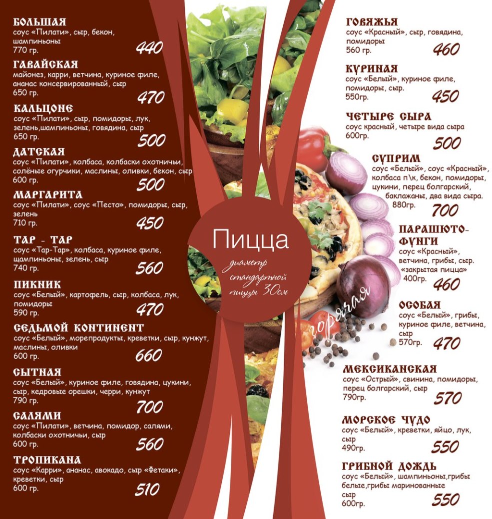Menu Pizzeria Mario Kamyshin