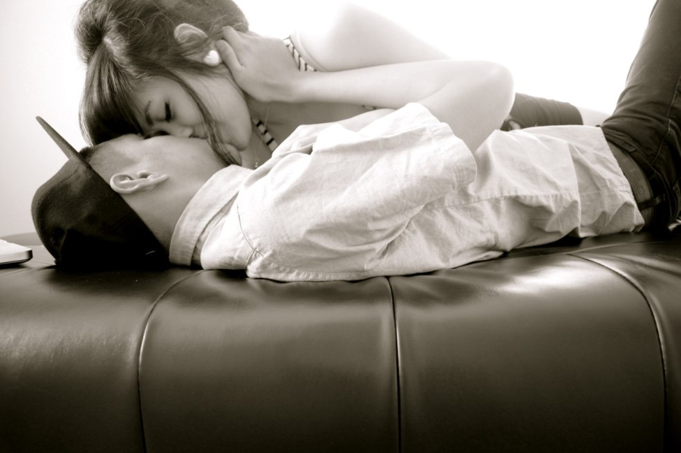 Baiser passionné sur le canapé