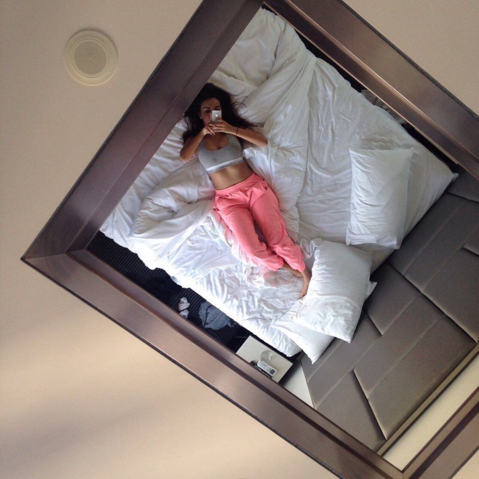 Plafond miroir au-dessus du lit