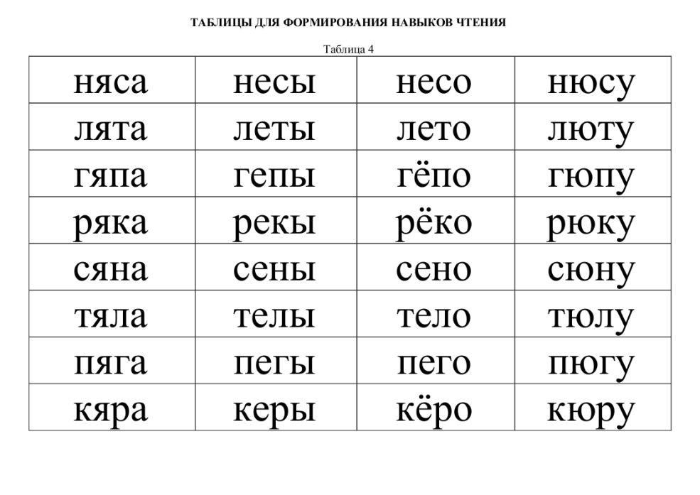 Tables pour la formation de compétences en lecture. Tableau 2