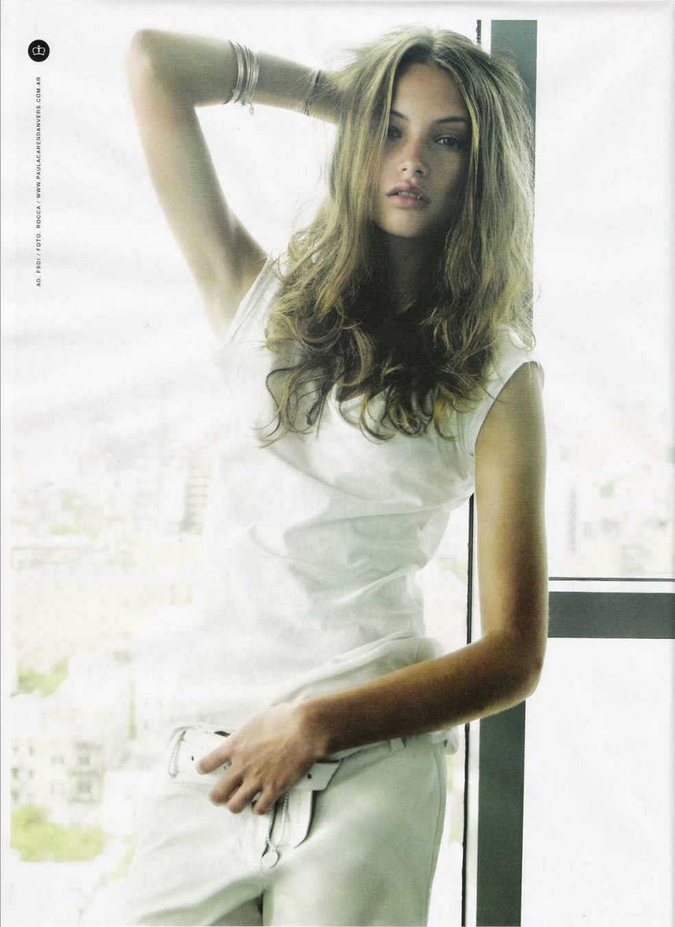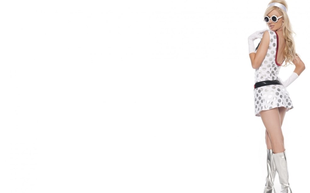 Blonde en blanc sur un fond blanc
